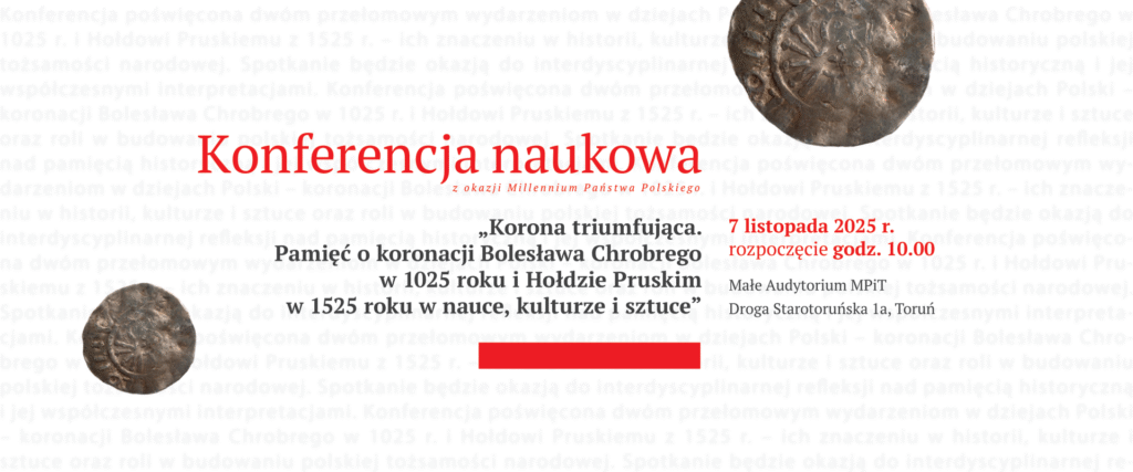 Muzeum „Pamięć i Tożsamość” im. św. Jana Pawła II w Toruniu serdecznie zaprasza do udziału w konferencji naukowej zatytułowanej „Korona triumfująca. Pamięć o koronacji Bolesława Chrobrego w 1025 r. i Hołdzie Pruskim w 1525 r. w nauce, kulturze i sztuce”, zorganizowanej z okazji milenium Państwa Polskiego, która odbędzie się w piątek 7 listopada 2025 r.