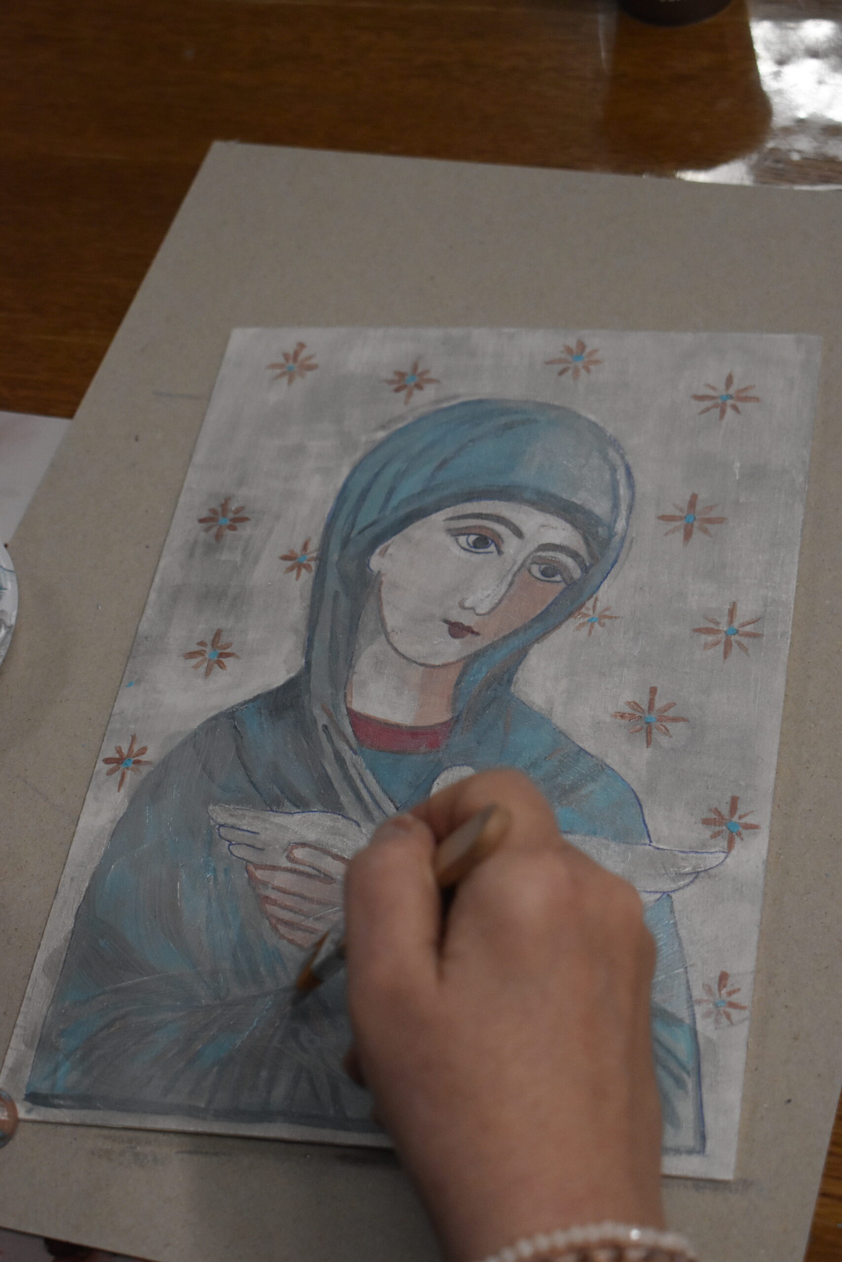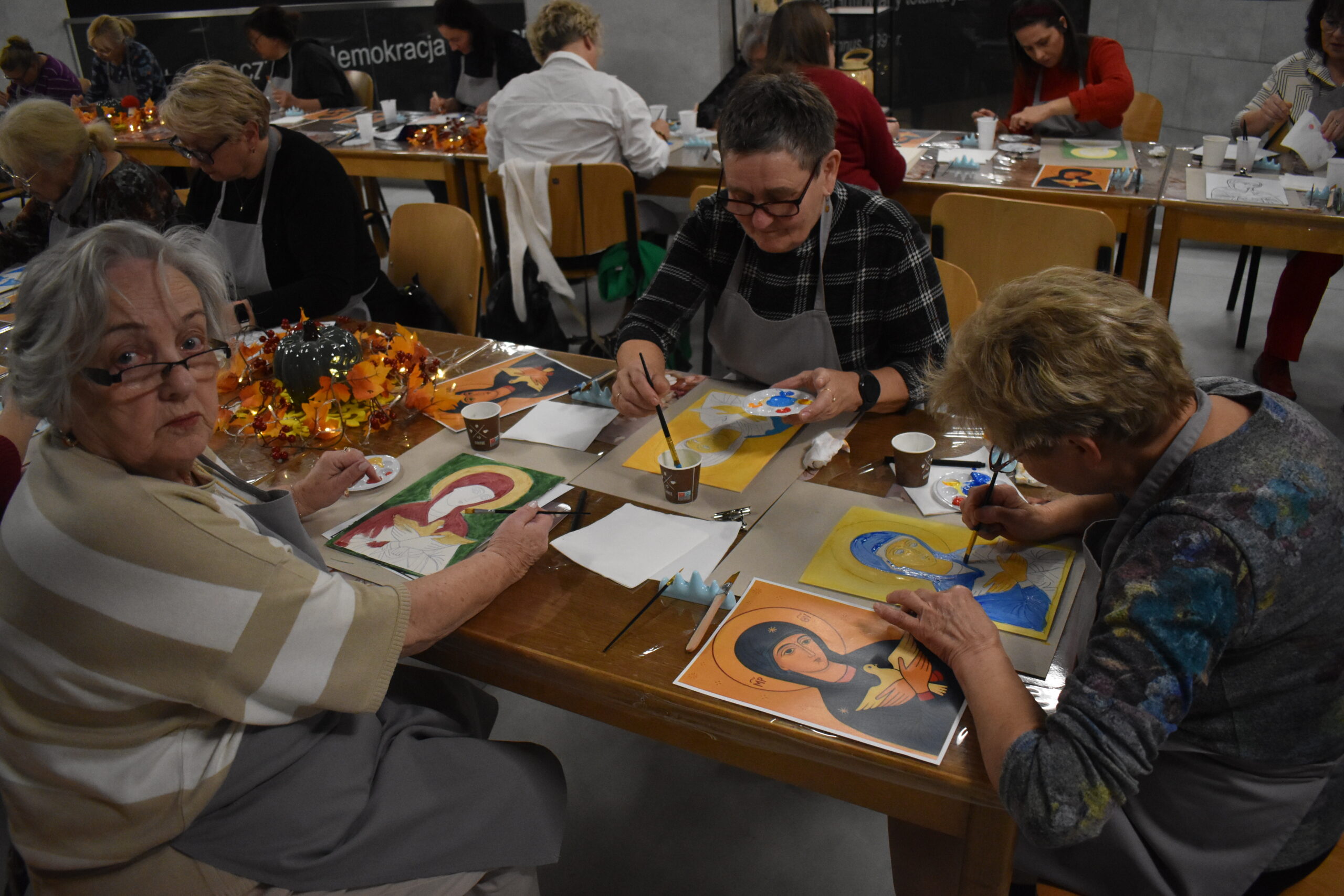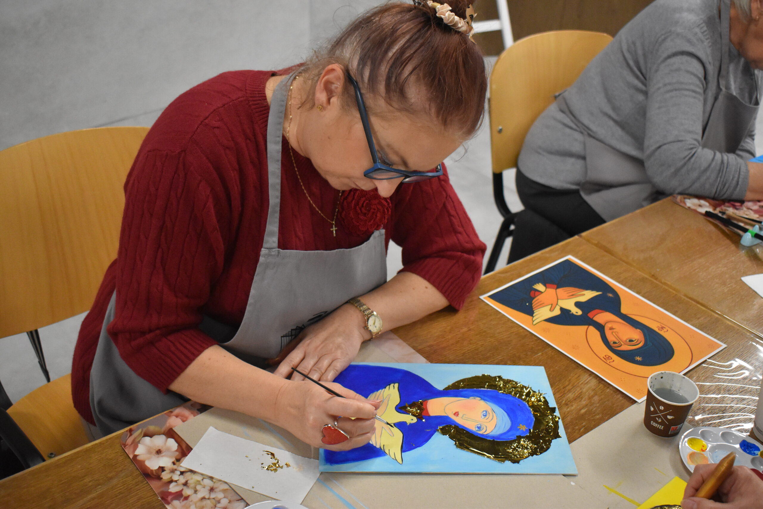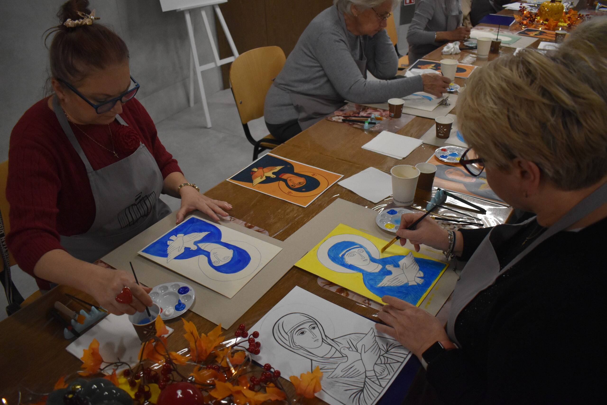 W naszym Muzeum odbyły się kolejne warsztaty dla osób aktywnych i pełnych pasji. Tym razem uczestnicy mieli okazję spróbować swoich sił w pisaniu ikon. W skupieniu i z ogromnym zaangażowaniem powstawały niezwykłe wizerunki Matki Bożej Oblubienicy z gołębiem w dłoniach.