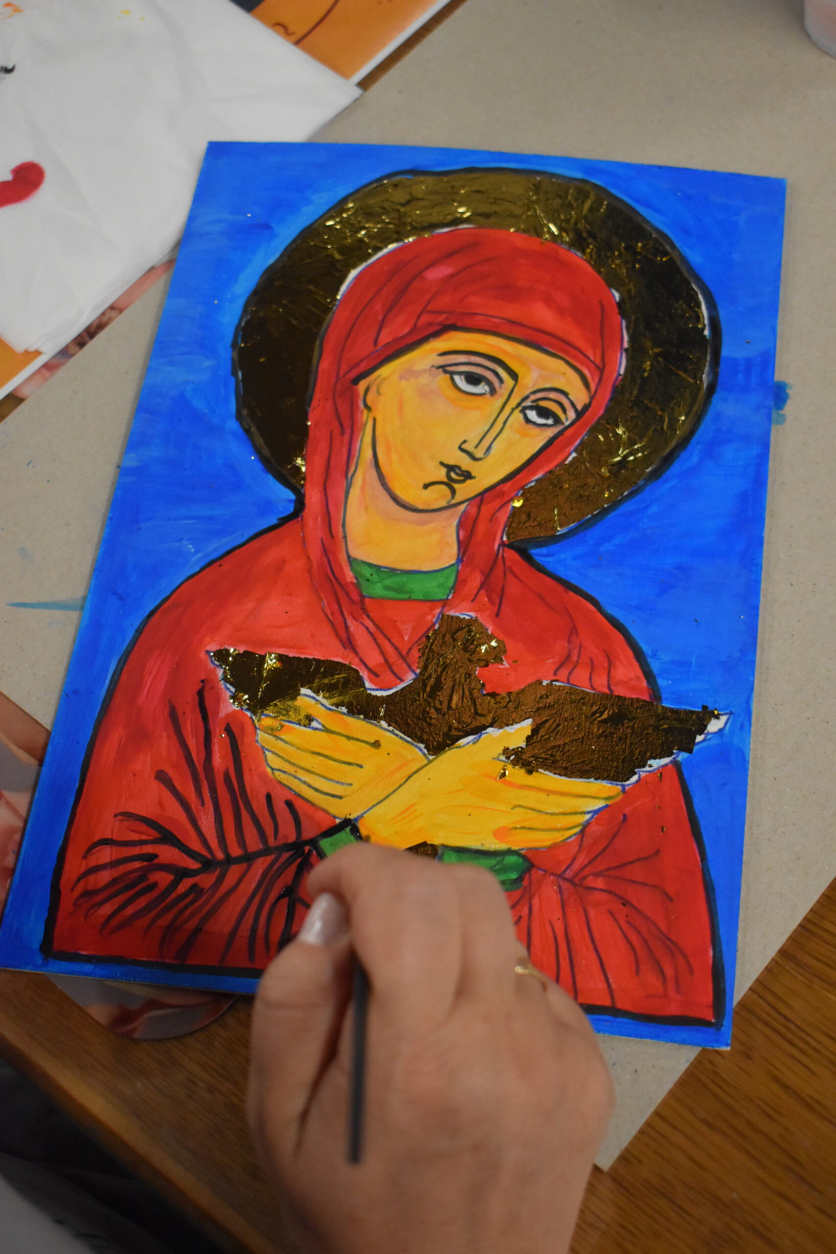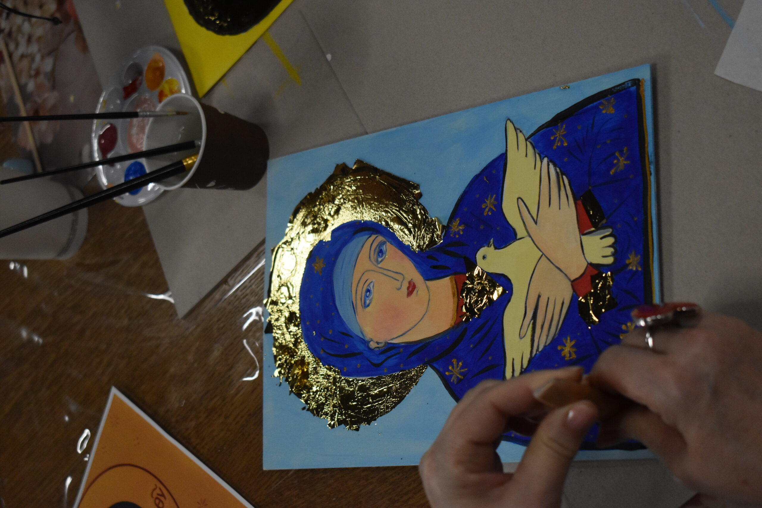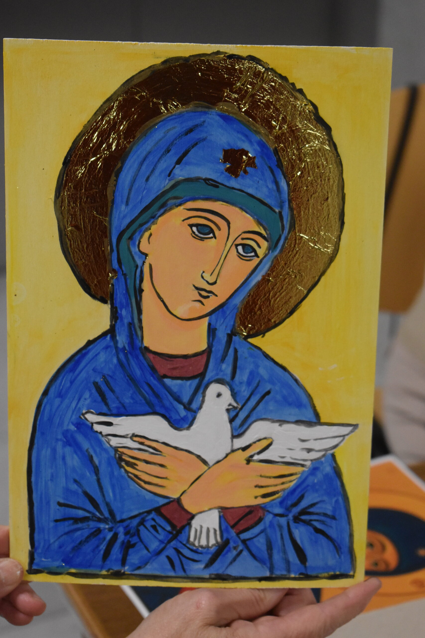 W naszym Muzeum odbyły się kolejne warsztaty dla osób aktywnych i pełnych pasji. Tym razem uczestnicy mieli okazję spróbować swoich sił w pisaniu ikon. W skupieniu i z ogromnym zaangażowaniem powstawały niezwykłe wizerunki Matki Bożej Oblubienicy z gołębiem w dłoniach.