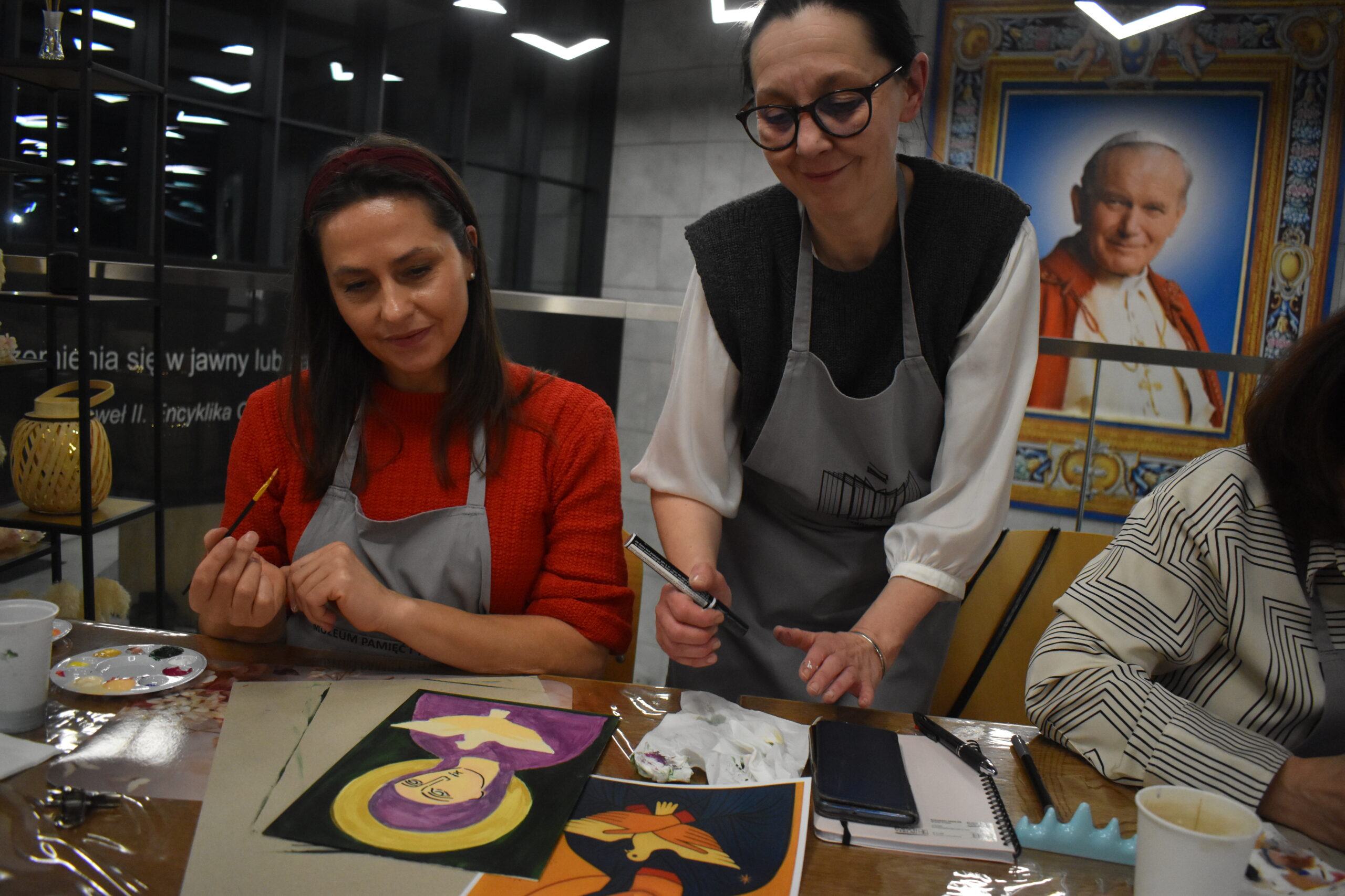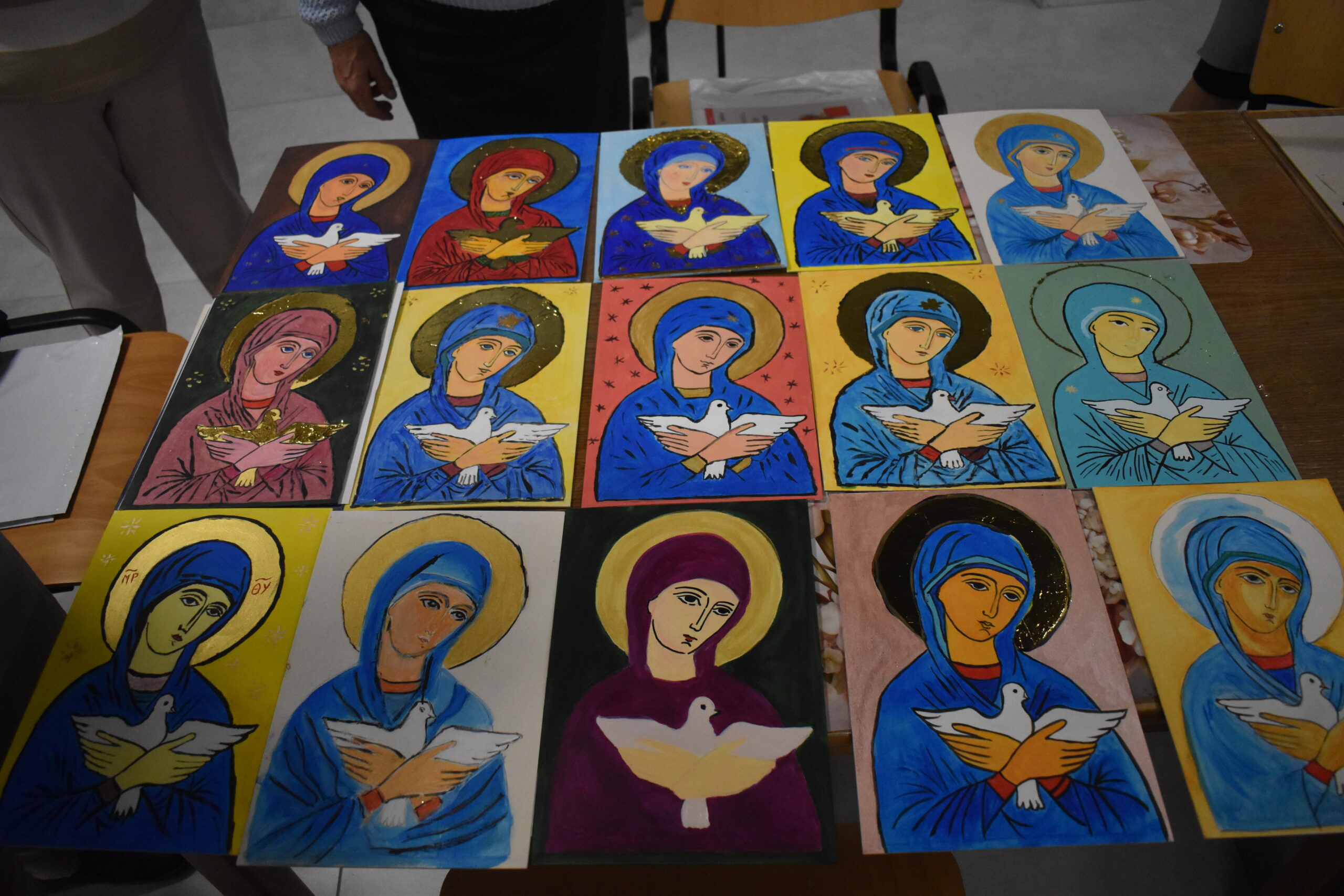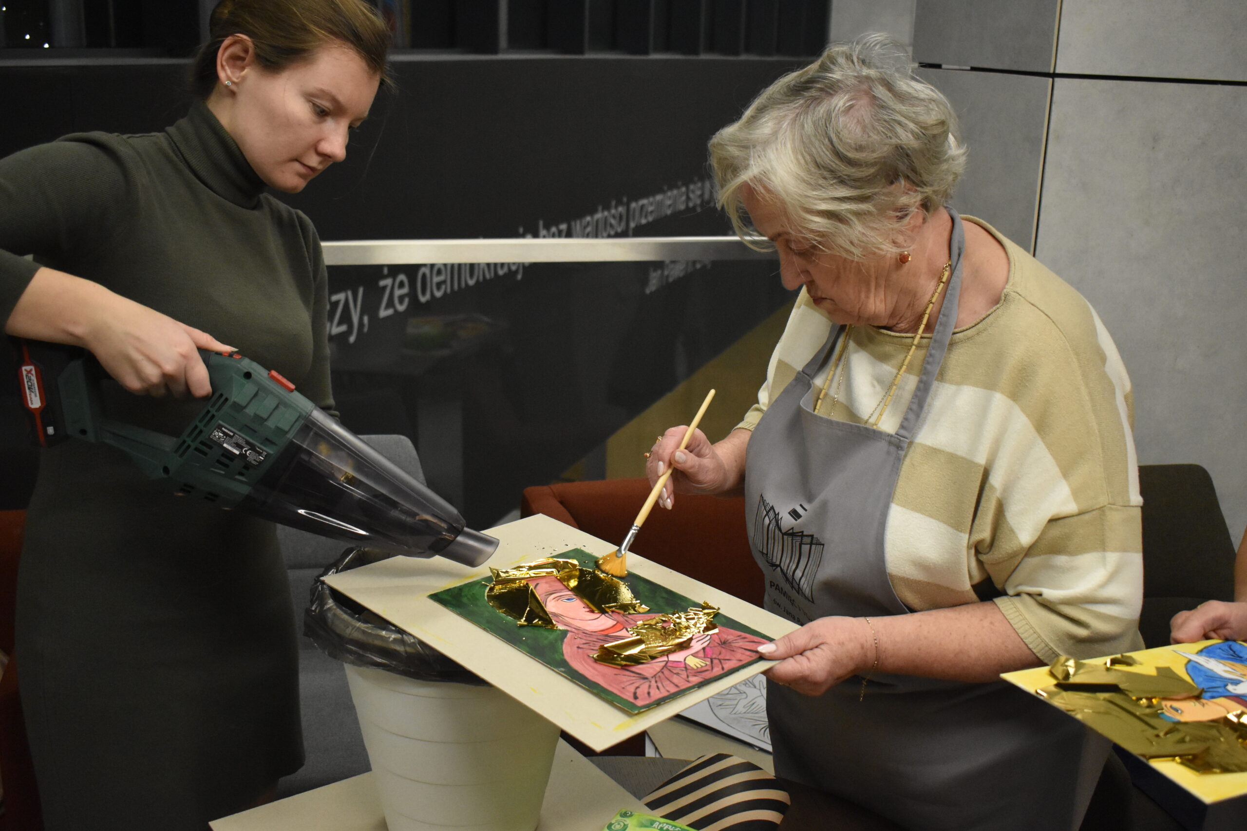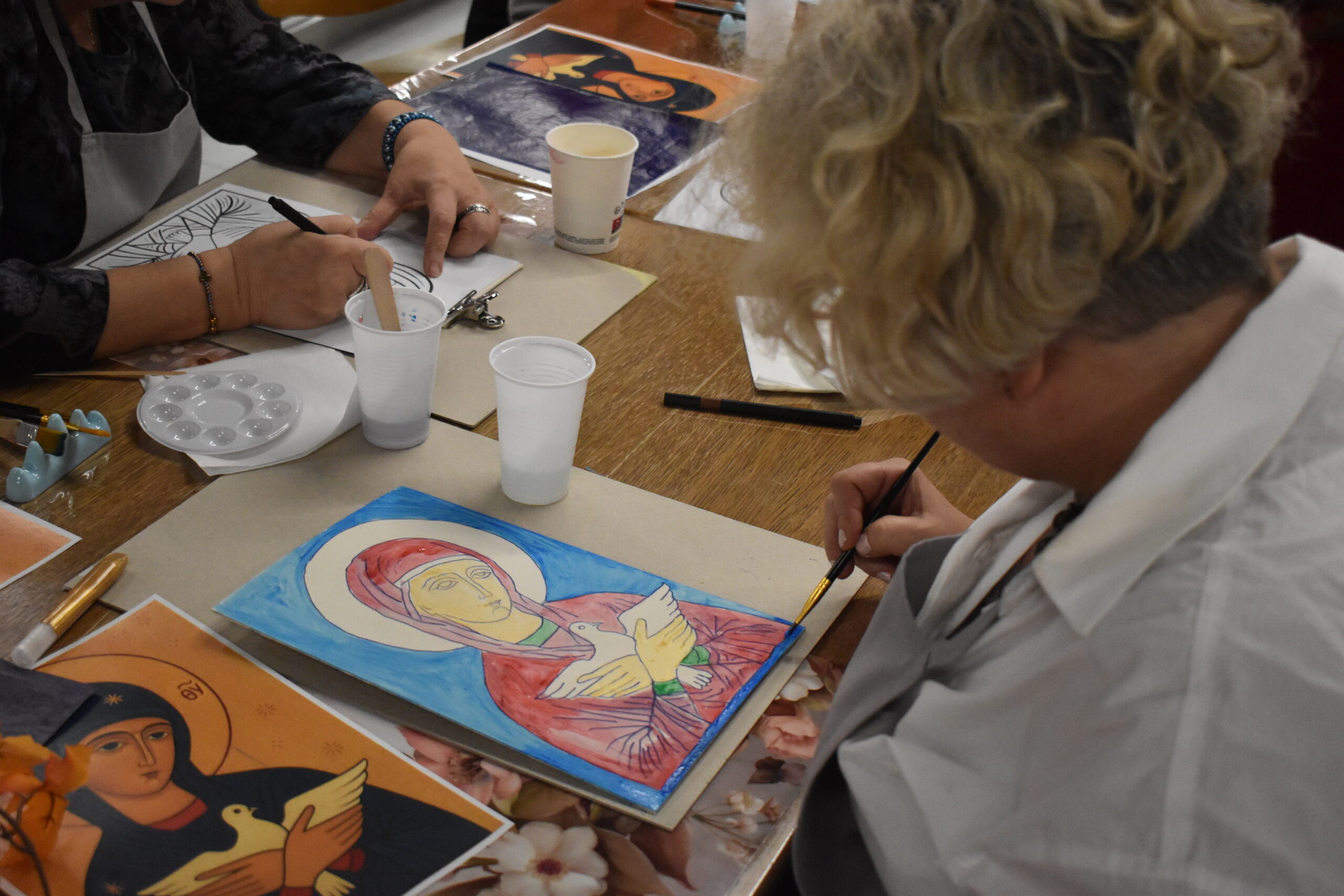 W naszym Muzeum odbyły się kolejne warsztaty dla osób aktywnych i pełnych pasji. Tym razem uczestnicy mieli okazję spróbować swoich sił w pisaniu ikon. W skupieniu i z ogromnym zaangażowaniem powstawały niezwykłe wizerunki Matki Bożej Oblubienicy z gołębiem w dłoniach.