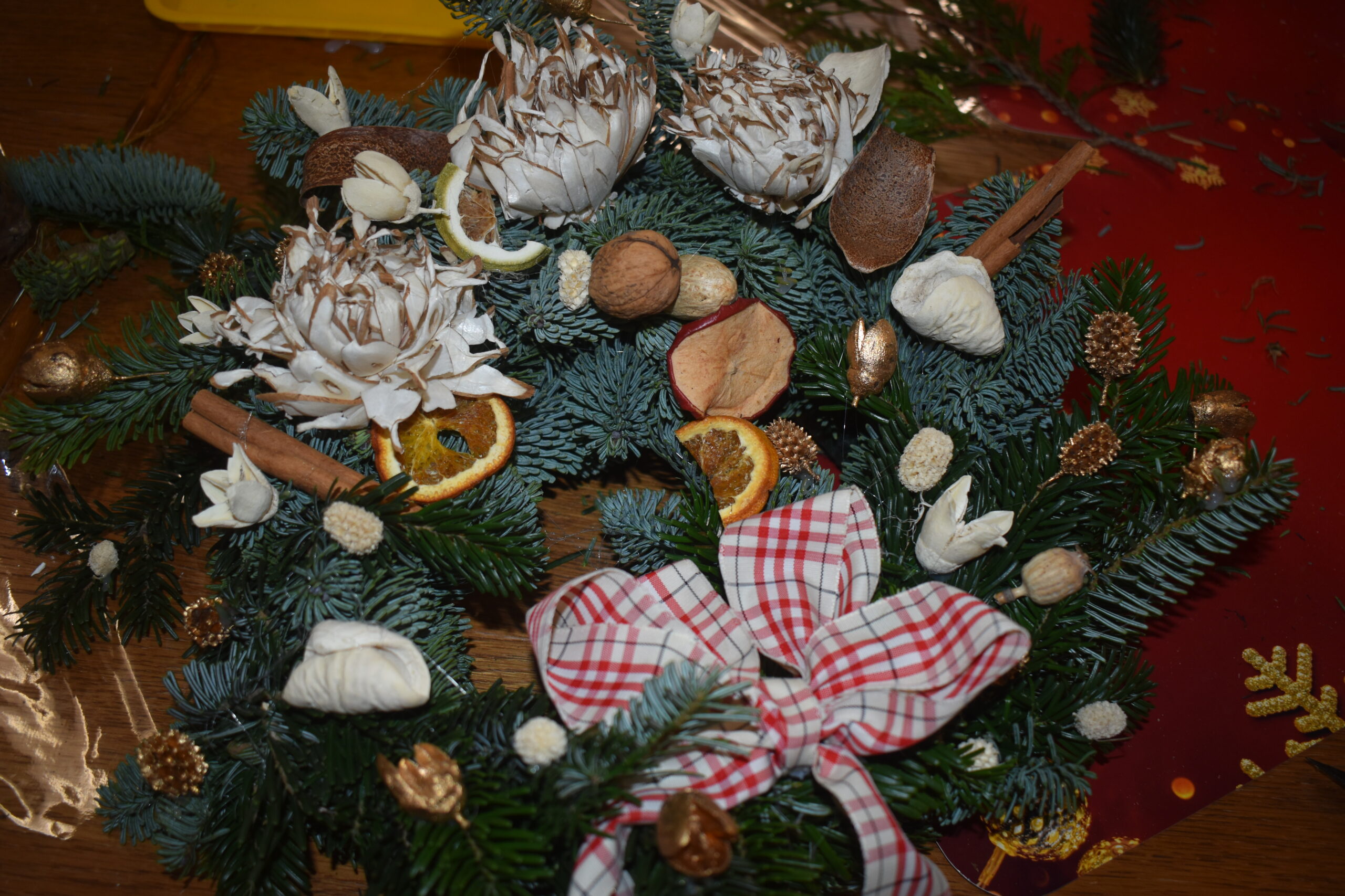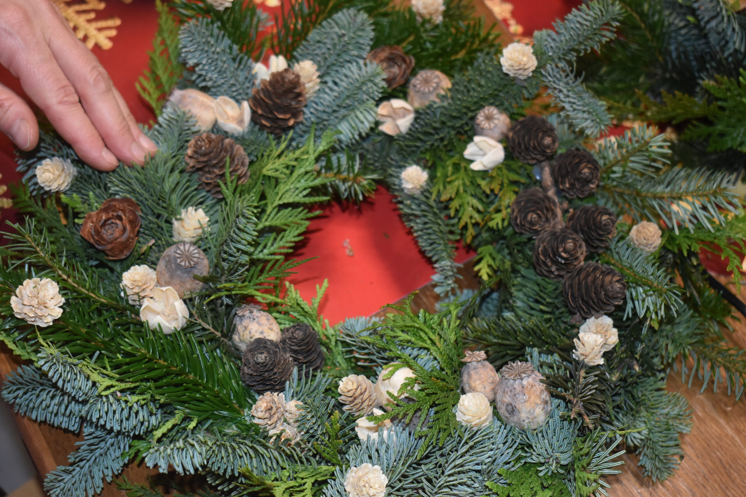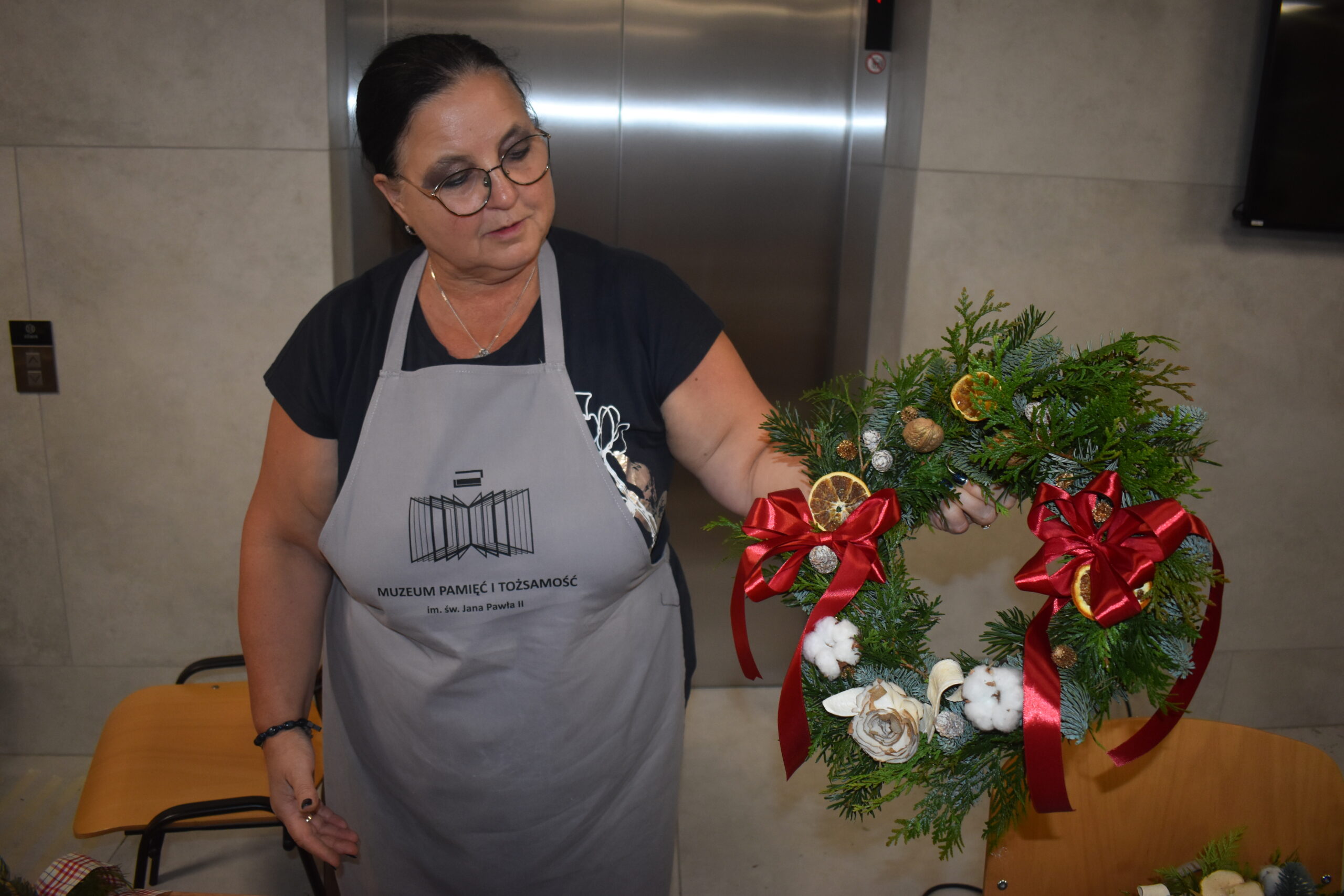 Spotkanie odbyło się 11 grudnia 2025 r. w przestrzeni przy kawiarni w Muzeum „Pamięć i Tożsamość”. Trzygodzinne zajęcia poprowadziła Agnieszka Włodarczyk, florystka i artystka z wieloletnim doświadczeniem, która z pasją dzieliła się swoją wiedzą i umiejętnościami.