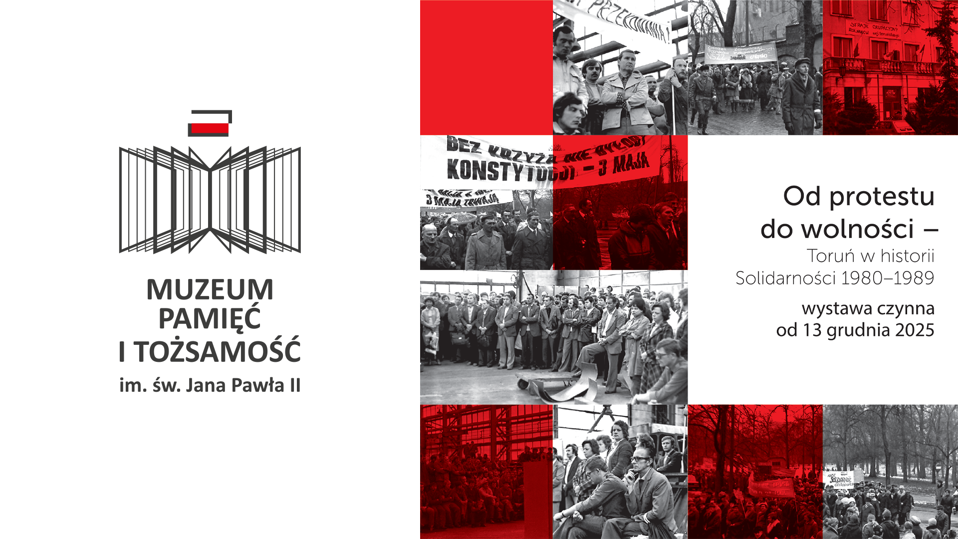 13 grudnia 2025 roku w Muzeum „Pamięć i Tożsamość” im. św. Jana Pawła II w Toruniu odbył się wernisaż niezwykłej wystawy czasowej „Od protestu do wolności — Toruń w historii Solidarności 1980–1989”. Ekspozycja, otwarta w rocznicę wprowadzenia stanu wojennego, przybliża historię ruchu „Solidarność”, która znacząco wpłynęła na losy Polski i Europy Środkowo-Wschodniej.