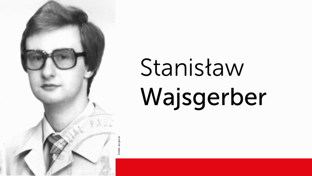 Pan Stanisław Wajsgerber. Urodzony 27 września 1957 r. w Grudziądzu. W 1980 r. ukończył prawo na Uniwersytecie Mikołaja Kopernika w Toruniu i w tym samym roku zaangażował się w działalność rodzącej się „Solidarności”. Od jesieni 1980 r. należał do związku, a wkrótce wszedł w skład Prezydium Międzyzakładowej Komisji Związkowej w Grudziądzu, pełniąc jednocześnie funkcję referenta prawnego. Udzielał pomocy prawnej działaczom oraz współorganizował lokalne struktury związku.