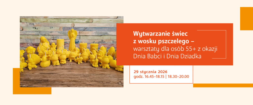 Wytwarzanie świec z wosku pszczelego – warsztaty dla osób 55+ z okazji Dnia Babci i Dnia Dziadka W programie m.in.: wytwarzanie świec z wosku pszczelego; poznanie etapów powstawania miodu – od nektaru do słoika; pyłek pszczeli i jego właściwości przeciwzapalne i przeciwbakteryjne; fascynujący świat pszczół, ich rola w środowisku i znaczenie dla człowieka. Dla […]